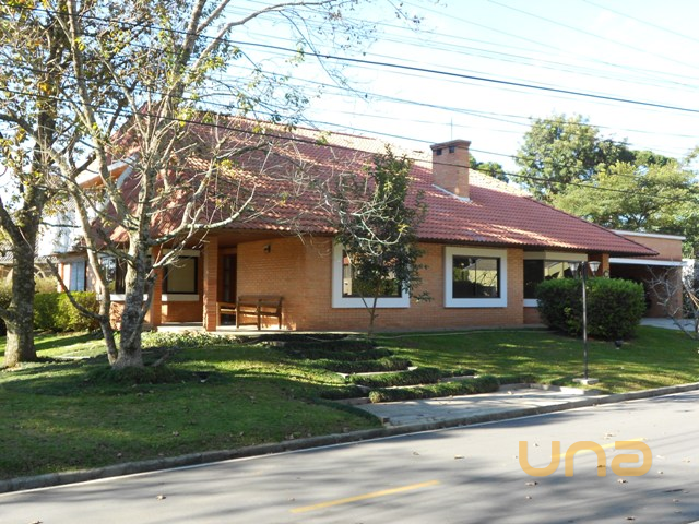 Residencia em condomínio fechado, com 425,80m² de área total construída, em 2 pavimentos, com 4 dormitórios (sendo 2 suítes, uma master no piso térreo com hidromassagem e closet), 03 com armários e opção para um 5º dormitório, amplas salas de estar e jantar ambas com lareira, cozinha com armários, copa com churrasqueira, escritório, sala íntima, banheiro social, lavabo, lavanderia, dependência de empregada com banheiro, sacada, vaga para até 6 carros (3 cobertos), jardim de inverno, depósito e amplo quintal, terreno medindo 931,50 m² de área privativa.