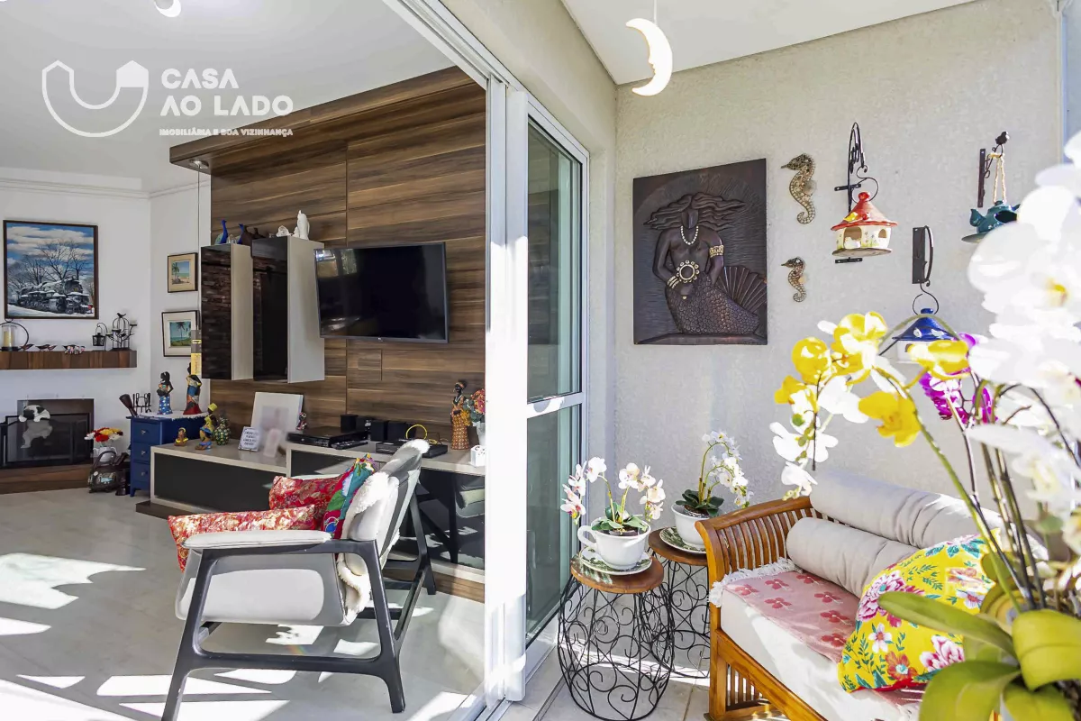 A área social é ampla e totalmente integrada: sala para dois ambientes (estar e jantar) com lareira a gás e lavabo, sacada frontal com vista definitiva e uma charmosa sacada gourmet com churrasqueira a carvão e pia de apoio. A cozinha, equipada com móveis planejados, cooktop, coifa e bancada para refeições rápidas, se conecta à área de serviço que dispõe de banheiro e aquecimento a gás.