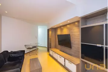 O apartamento possui 3 quartos (1 suíte), sala para dois ambientes, sacada com churrasqueira a carvão, infraestrutura para ar-condicionado nos dormitórios e na sala, além de 1 vaga de garagem.