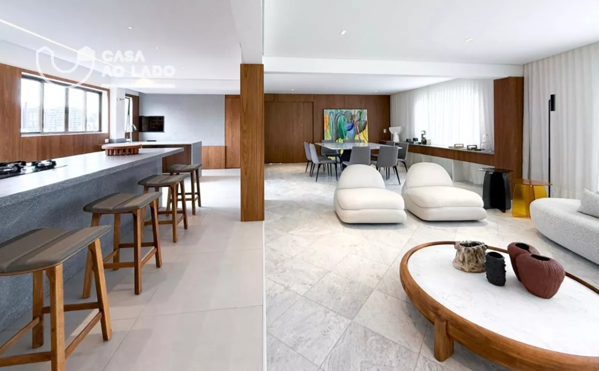 Com 4 amplas suítes, e estrutura para closet, o apartamento oferece total privacidade e conveniência. São 3 vagas de garagem e um elevador privativo que leva diretamente ao imóvel. A sala de estar e jantar, integradas e bem iluminadas, apresentam uma charmosa adega que emoldura o hall de entrada, criando um ambiente sofisticado para receber convidados.