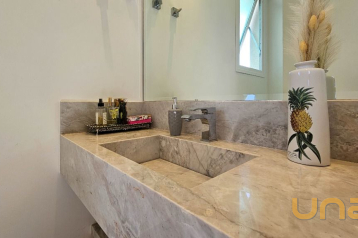 * Cozinha integrada à sala de estar, formando um ambiente amplo, aconchegante e funcional;