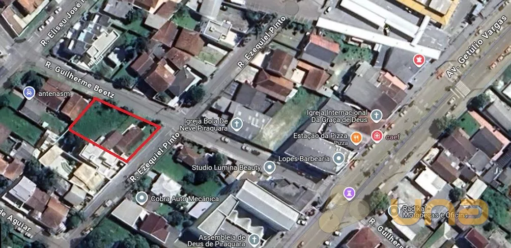 Exelente e amplo terreno de esquina e grande testada, há cem metros da Av. Getulio Vargas, rua de grande atividade comercial no centro de Piraquara e do supermercado Jacomar. otimo e próximo de tudo.