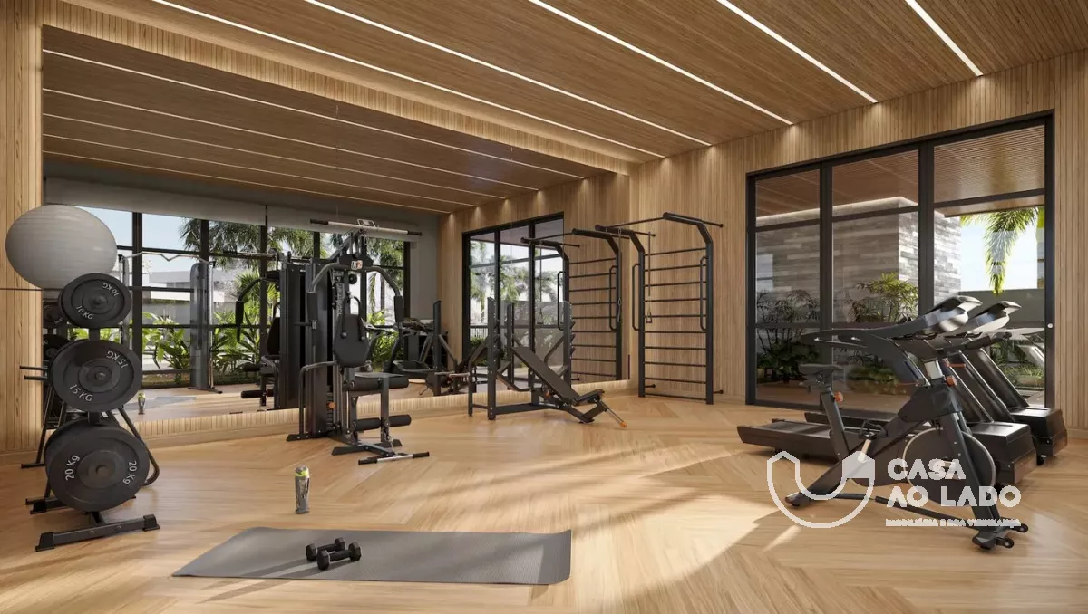 O salão de festas possui churrasqueira e forno de pizza, copa de apoio e um lounge externo. Na academia, você terá acesso apenas à aparelhos de primeira linha, garantindo a sua qualidade de vida, com uma vista para o fire place! A piscina é descoberta e aquecida, possui deck molhado e outra piscina infantil com cascata. O playground fica ao ar livre e próximo a quadra de esportes. O condomínio também possui um Garden Bar que conta com uma chopeira, churrasqueira e vista para o playground.