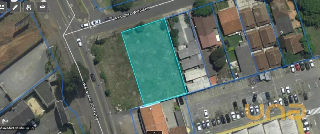 Testada de 37 metros para a Avenida Senador Salgado Filho e 34 metros para a Rua Adolfo Werneck.