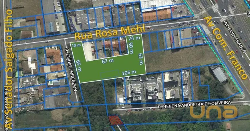 Testada: 24m pela Rua Rosa Mehl